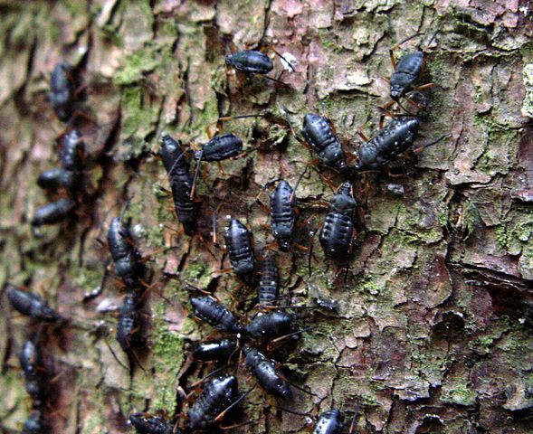 Kolonie der Großen Schwarzen Fichtenrindenlaus