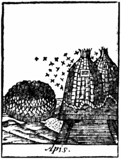 Schon die Illustration zum Stichwort BEE ist seltsam. Eine auffällige, ordentliche Kurve, in der die Tiere in ihren Bau zurückfliegen, betont die Ordnung und die kollektive Arbeit der Bienen. Während die Bienenkörbe relativ realistisch dargestellt sind, sehen ihre Bewohner eher aus wie eine Mischung aus Handgranaten und Federbällen.